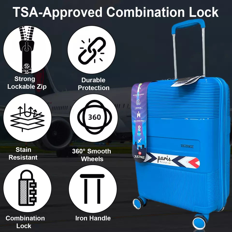JUSTPACK'S PP Luggage offers a range of convenient features to enhance your travel experience. PP Luggage is a reliable and practical travel companion with expandable capacity, detachable wheels, lightweight build, and essential security features like the TSA combination lock. Its combination of functionality and style makes it suitable for various travel scenarios.